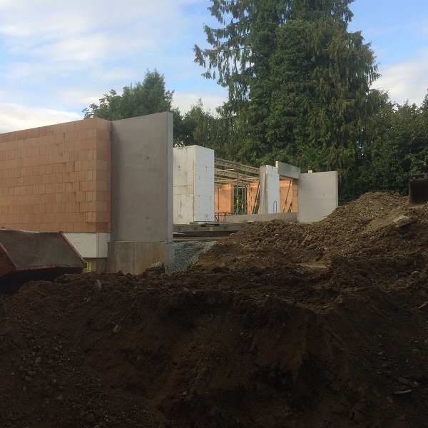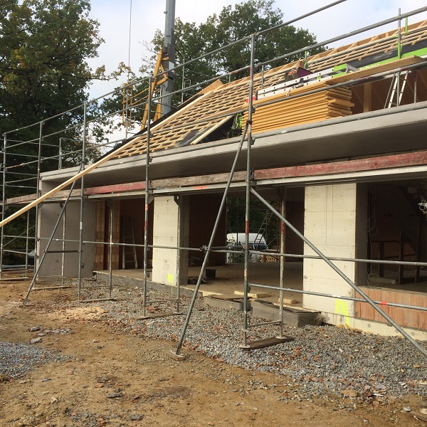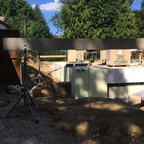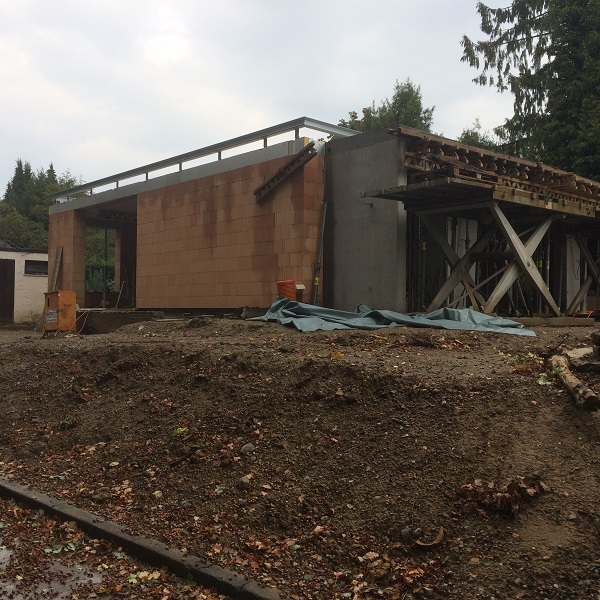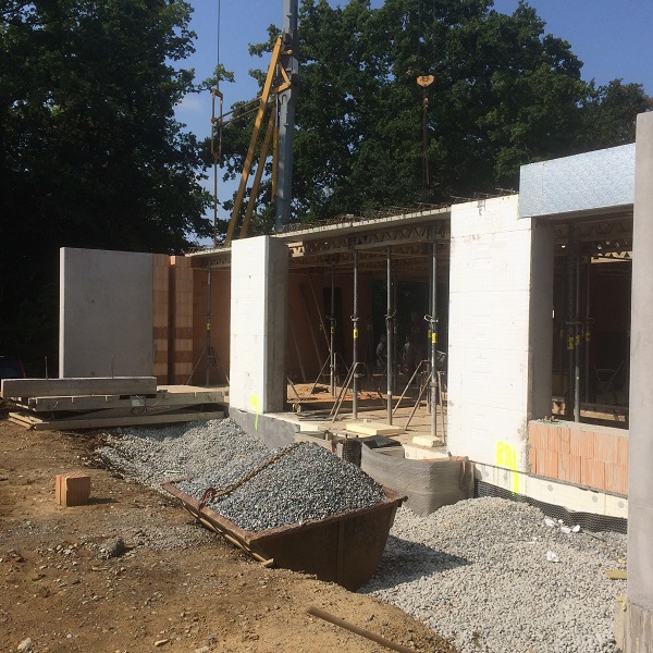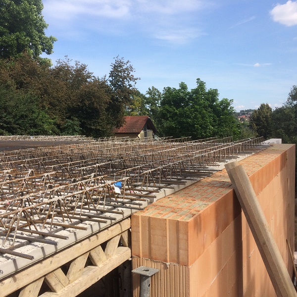 | Stand 28. August 2018 (Verlegung der Halbferigteildecke über EG) |