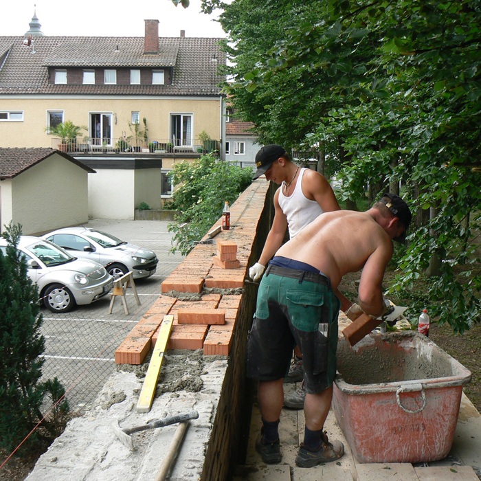 | Stand August 2008_Mauerwekskrone neu aufmauern. |