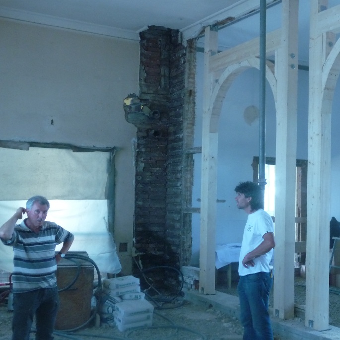 Ausbau Holzboden im EG vor Unterfangungsarbeiten |