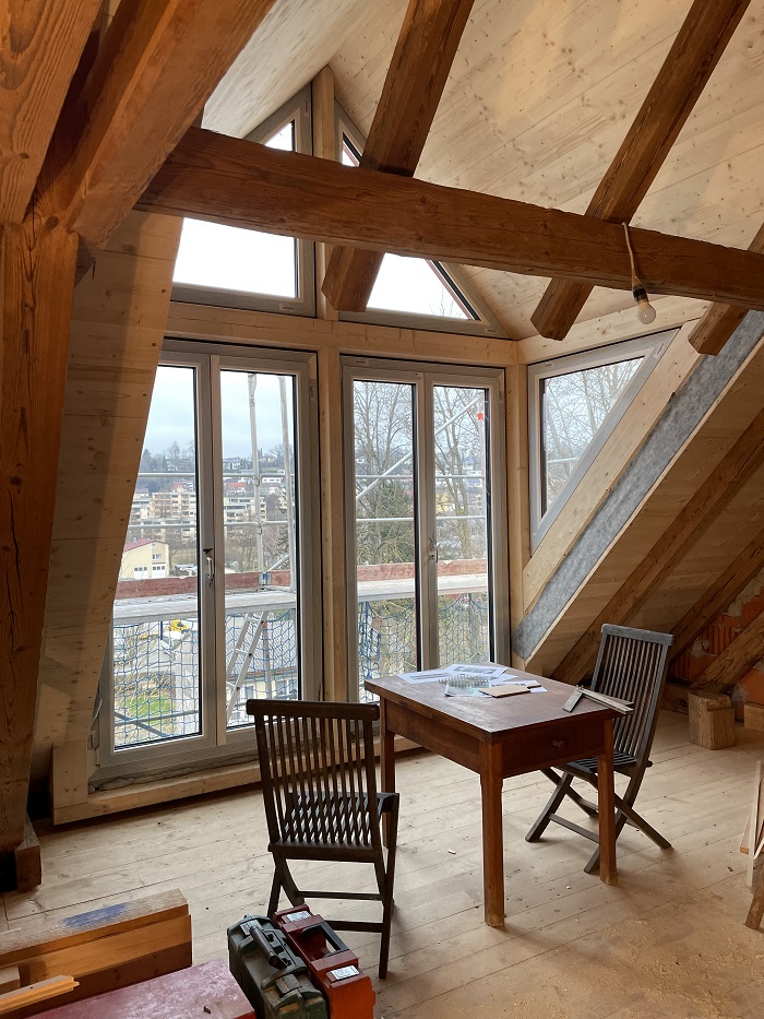 Baustellenfoto Stand 12. Januar 2022 (Blick in den Dachstuhl)