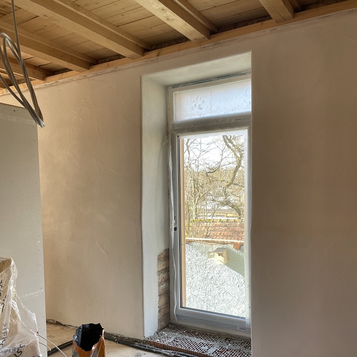 Baustellenfoto Stand 04. Februar 2022 (Verputzen der Fachwerkwand)
