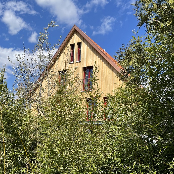 Baustellenfoto Stand 10. September 2021 (aufrichten der Aufsparren Süd-Ost-Fassade)