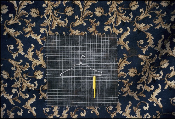 'Burnt Carpet' - Performanc witch carpet, ribbon, hanger and cotton
